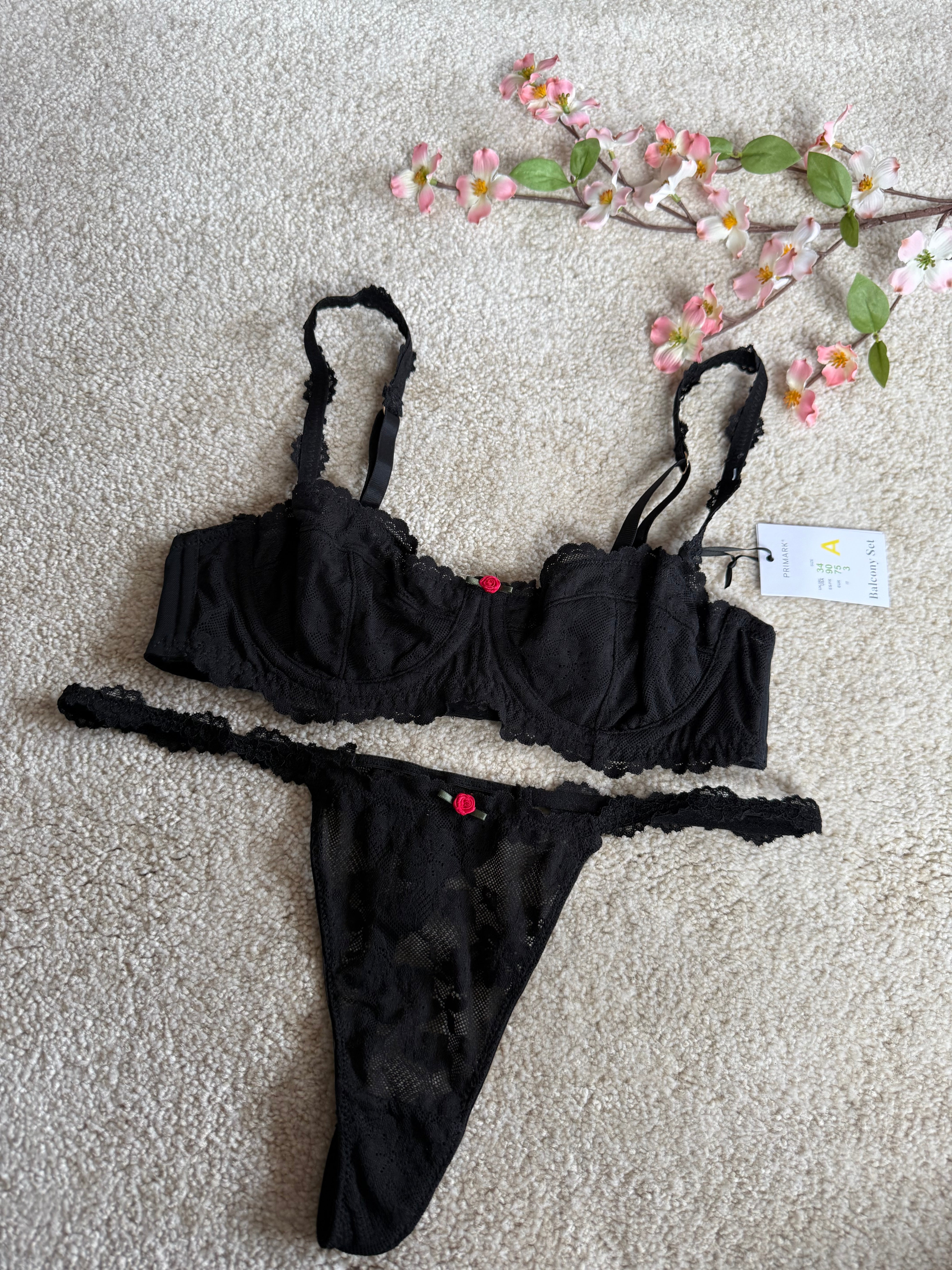 A non padded, underwired bra with a matching thong from Primark.